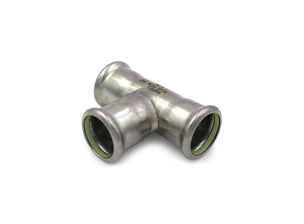 inoxPRES HT is the Pressfitting system by Raccorderie Metalliche made of stainless steel for all grease‑free applications. The HT line differs from the standard version thanks to the presence of the green FKM O‑Ring in the toroidal chamber.
