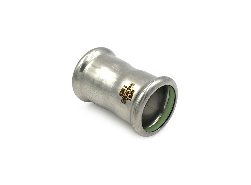 The fittings made of 316L stainless steel can be paired with a range of pipes from 15 to 108 mm in diameter.The fittings feature an 'M profile' toroidal chamber, optimised based on Raccorderie Metalliche's expertise, in which an O-Ring developed by Raccorderie Metalliche is directly mounted at the factory. This O-Ring is the result of patented innovation. The dedicated O‑Ring for inoxPRES HT is identifiable by its green color and is made of a special FKM compound developed for this specific application field.